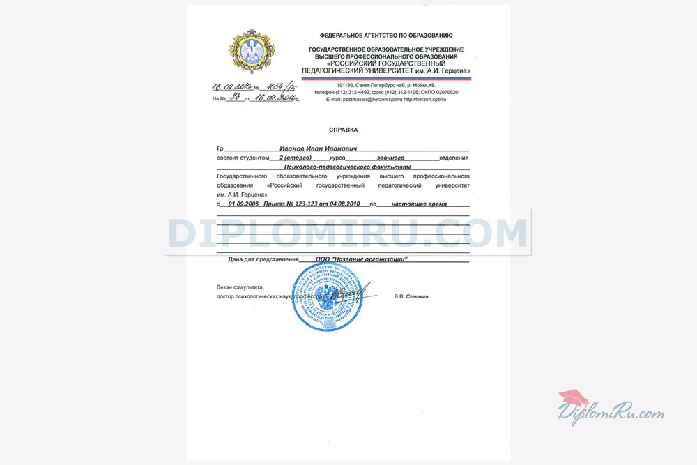 Справка об обучении в ВУЗе, техникуме, школе